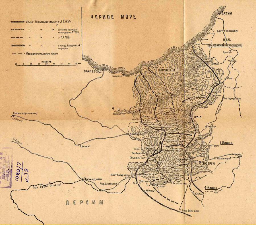Начатая 28 декабря 1915 г. и закончившаяся к 12 марта 1916 г. семидесятипятидневная операция, называемая по конечному итогу ее Эрзерумской, состояла из двух самостоятельных и последовательных операций, имевших определенно поставленные цели: первая - нанесение коротким ударом поражения живой силе турок, а вторая — окончательный разгром 3-й турецкой армии, укрывшейся за верками крепости Эрзерум, и овладение последней. В общем Эрзерумская наступательная операция, проведенная в тяжелых зимних условиях на горном театре, представляет один из примеров доведенной до конца сложной операции, состоявшей из нескольких, вытекавших один из другого, этапов, закончившихся разгромом противника, потерявшего свою основную базу на передовом театре — крепость Эрзерум.