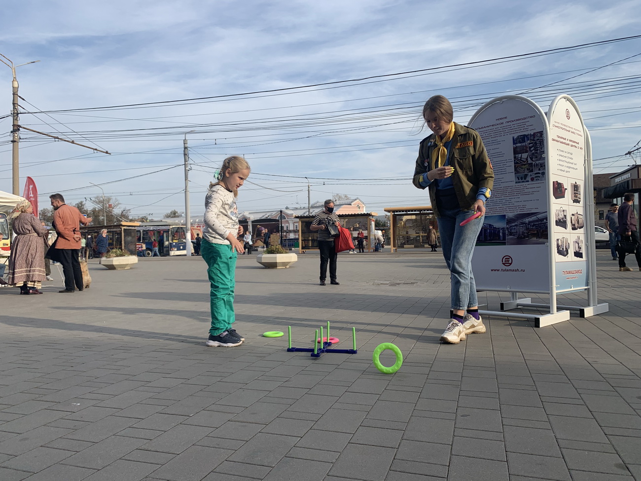 Активисты РДШ «ДЮЦ» подготовили для гостей события интерактивную площадку. Юные и взрослые жители города могли оценить свою меткость в стрельбе из лука и потренироваться в метании на кольцебросе.