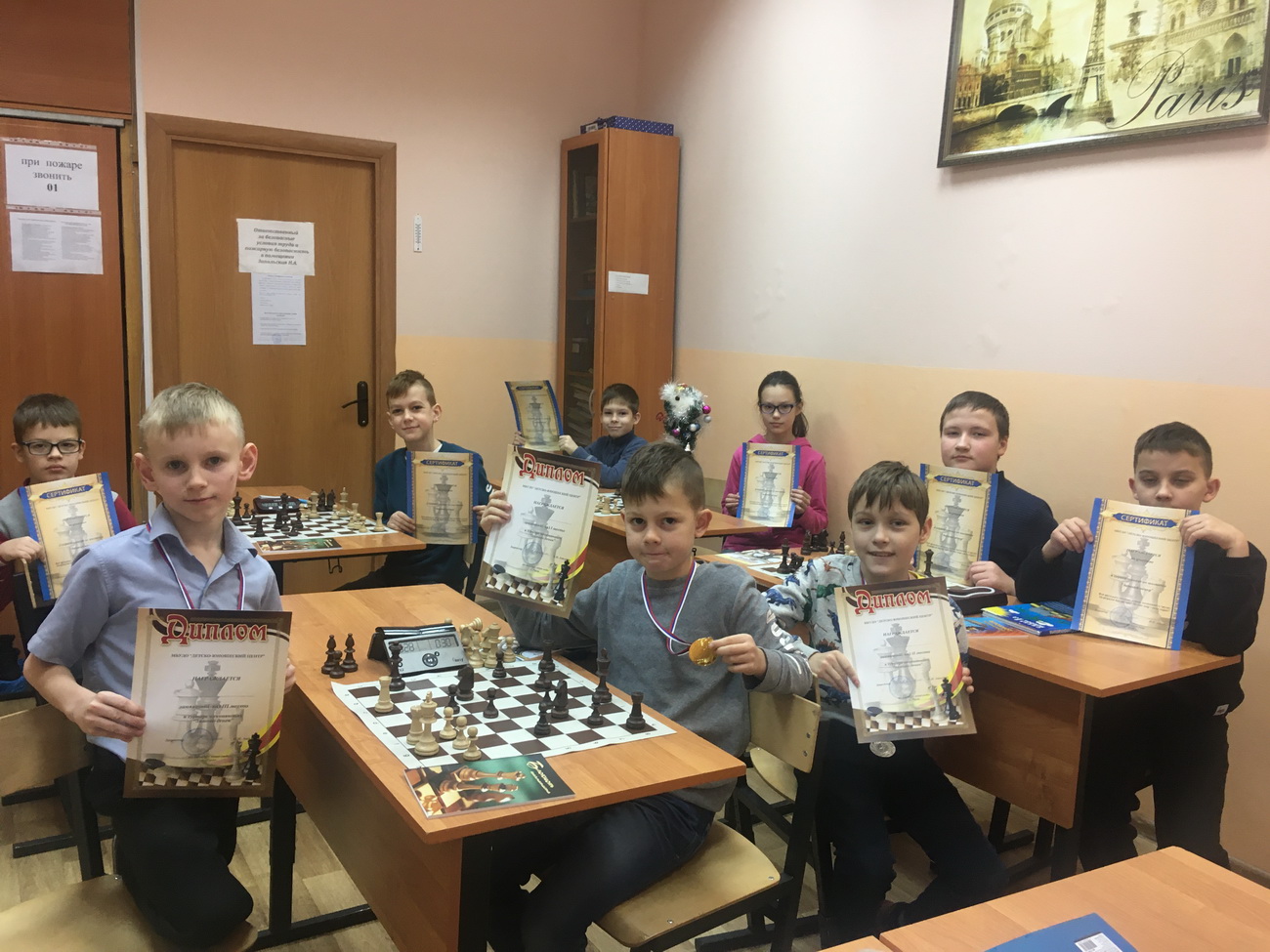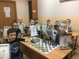 В турнире начинающих шахматистов «Новогодний вечер» победителем стал Помелов Егор (5 лет), 2-ое место занял Бабкин Артем (8 лет), на 3-ем месте Травкин Илья (6 лет). Все призеры выполнили норму 3 юношеского разряда. Немного отстал от тройки лидеров Тарасов Кирилл (6 лет). Он занял 4 место. Тем не менее, это не помешало Кириллу тоже выполнить норму 3 юношеского разряда.