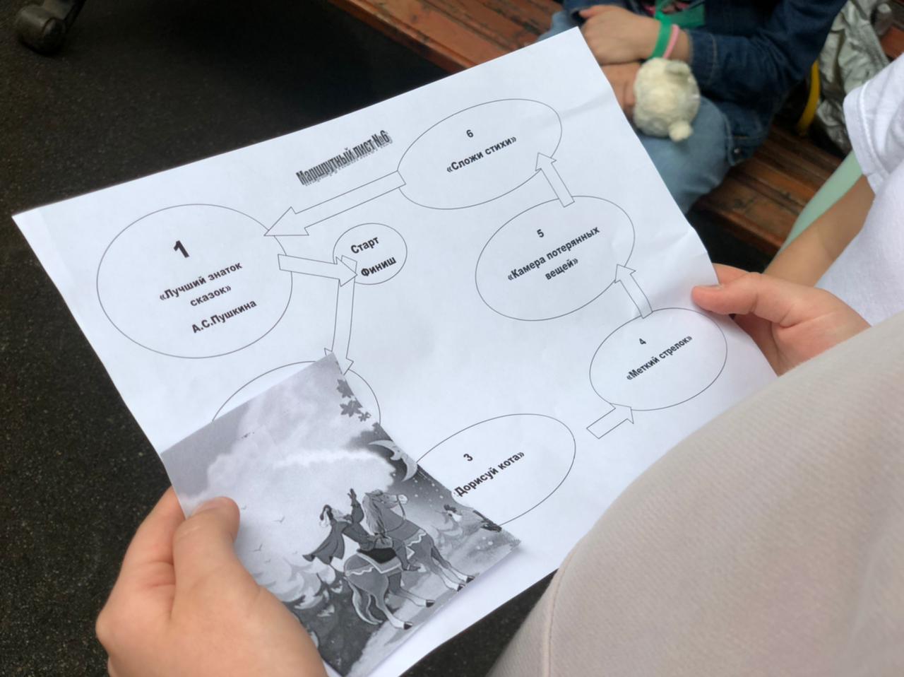 Дружно и весело ребята вспоминали окончания фраз из сказок, продолжали предложенные отрывки из произведений А.С.Пушкина, узнавали сказки по иллюстрациям. При помощи станции «Камера потерянных вещей» отгадывали «сказочные предметы» и даже рисовали «учёного кота».
