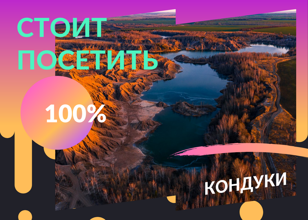 Искусственные лазурные озёра и «марсианские» горы (терриконы), располагающиеся близ деревни Кондуки Узловского района Тульской области. Удивительно красивое и экзотичное для нашей широты место привлекает туристов не только из пряничной столицы, но и из соседних областей, а так же блогеров со всей России.
