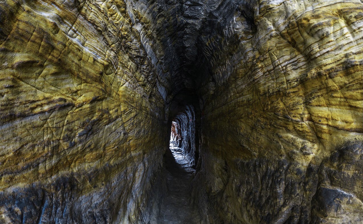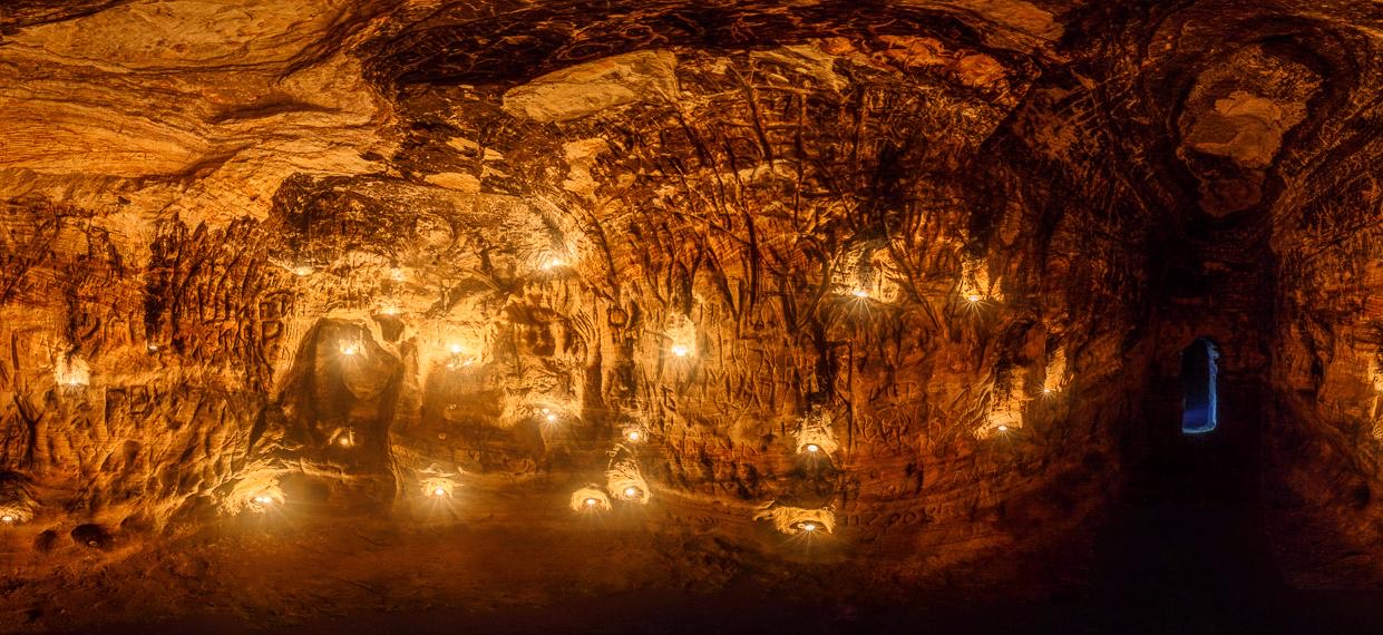 Подземный извилистый 250-метровый пещерный лабиринт с нишами и бывшим церковным алтарем.