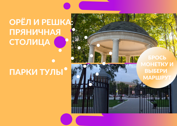 С вами снова #ОрелиРешка_ДЮЦ. Мы подготовили для вас два двухчасовых маршрута по паркам Тулы. Чтобы было ещё интереснее, выбирайте, по какому пойдёте, с помощью монетки. Подбросьте её… что выпадет?