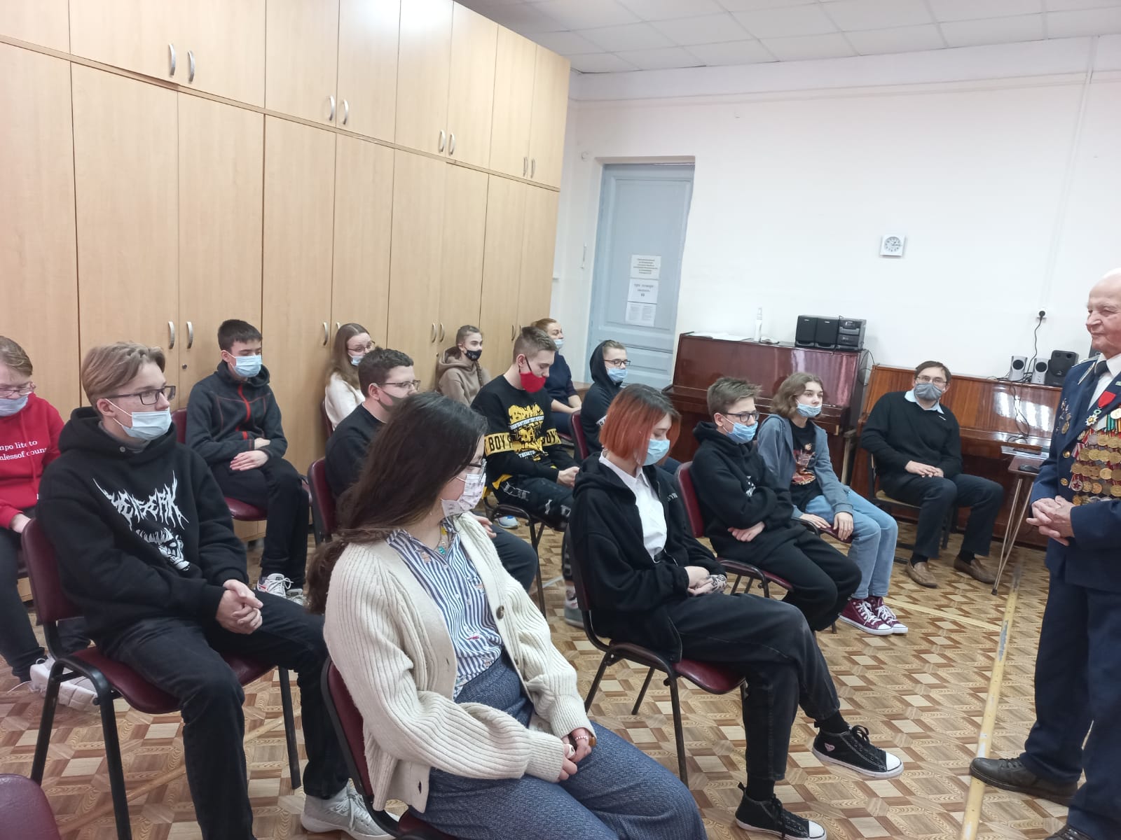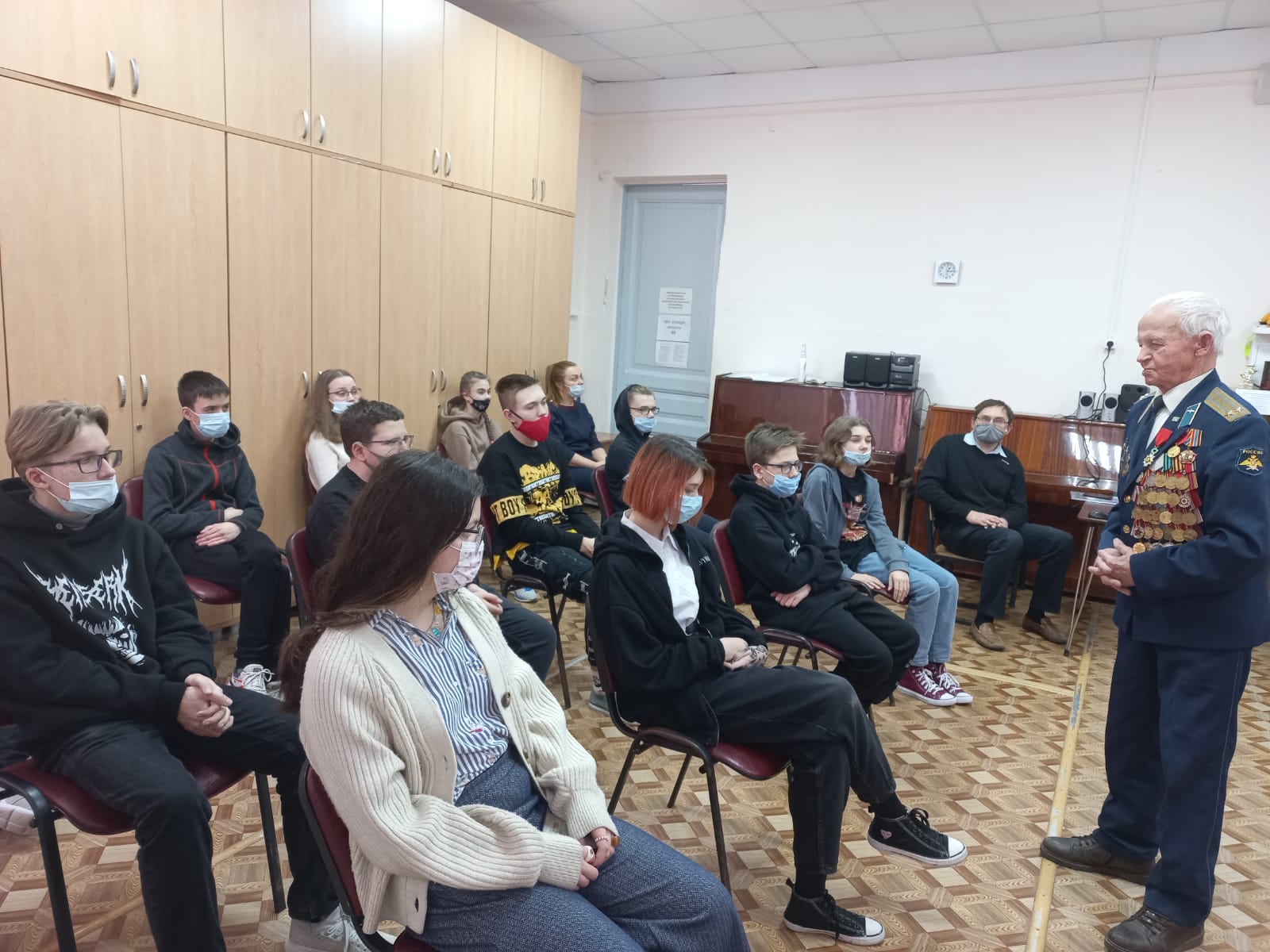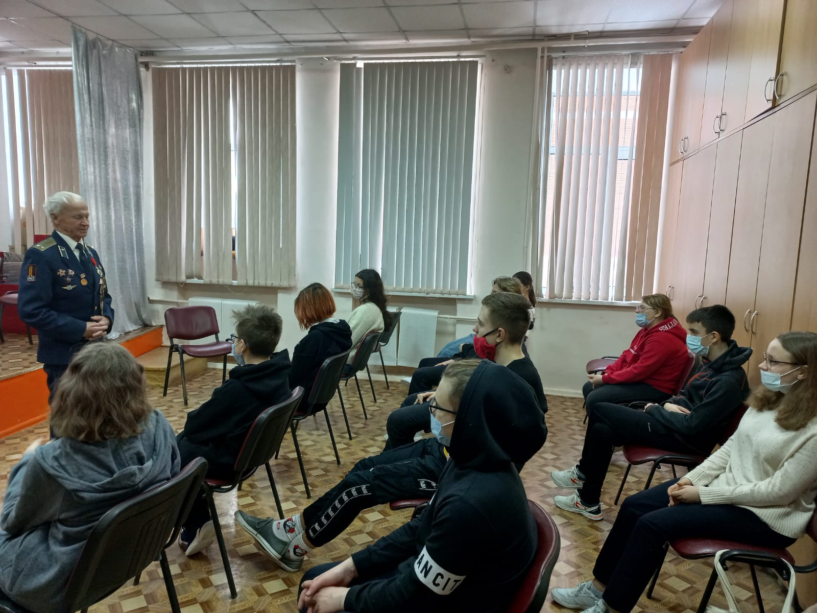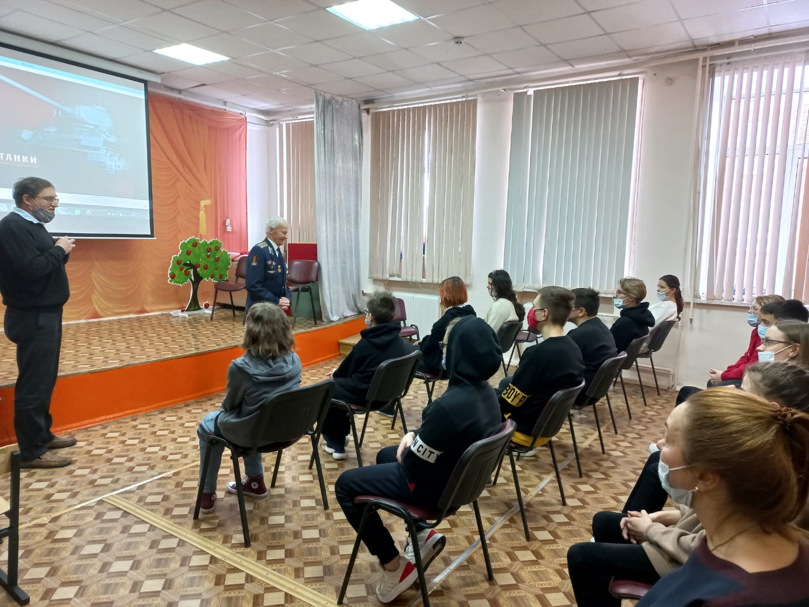 28 января 2022 года в Детско-юношеском Центре состоялась встреча «Оружие Победы» обучающихся объединения «Юные краеведы» и Центра образования № 23 с выдающимся туляком – участником Великой Отечественной войны Николаем Ивановичем Кульповым. Место для встречи было выбрано не случайно. Николай Иванович воевал за штурвалом легендарного штурмовика ИЛ-2, а в здании Детско-юношеского Центра учился Герой Советского Союза Николай Алексеевич Васин, направивший 15 октября 1944 года свой повреждённый ИЛ-2 в скопление вражеских войск. Николай Иванович рассказал детям о вкладе штурмовой авиации в разгром врага и о своей службе в Вооружённых Силах во время Великой Отечественной войны и в послевоенные годы, в том числе о своём участии в военных действиях на Корейском полуострове. Дети с интересом слушали рассказ ветерана и задавали вопросы. В завершение встречи Николай Иванович призвал ребят укреплять своё здоровье и физическую форму, чтобы быть готовыми встать на защиту Отечества, и выбрать профессию пилота. |