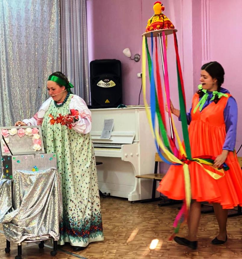 Создать атмосферу поистине народного гуляния помогли несложные атрибуты: Петушок-каруселька, волшебный ларец, веточки от каждого времени года, которые помогли открыть его, и расколдовать символ всех времён года – венок. К ребятам заглянула красавица Весна и скоморошинка Варенька, которые под звуки русской музыки устроили для всех ребят масленичные игры.
