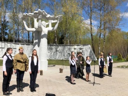5 мая  юные артисты МБУДО «ДЮЦ»  объединений «Актёры без масок» и «Овация» приняли участие в митинге памяти,  посвящённом 77 –й годовщине Победы.