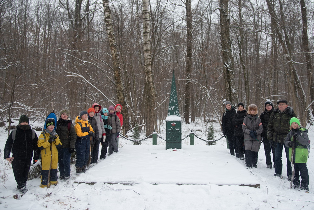 | 7 декабря в день присвоения Туле звания «Город-герой» обучающиеся объединения «Юные краеведы» (рук. Струков К. В.) совершили поход по Малиновой засеке. В 1941 году на случай захвата противником Тулы здесь была подготовлена база для партизанских действий. В деревне Рвы участники похода почтили память жителей, расстрелянных немецкими оккупантами осенью 1941 года. Побывали на бывшей станции Рвы Тула-Лихвинской железной дороги, рядом с которой погиб партизан С. А. Козырев. |