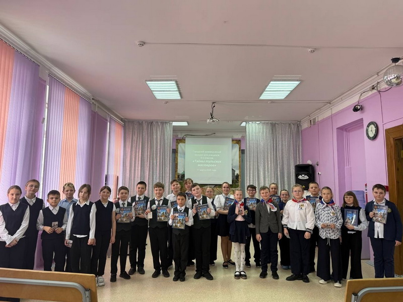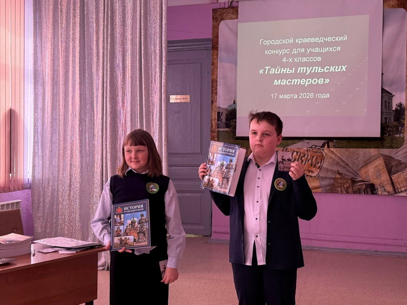 17 марта 2026 г. в МБУДО «Детско-юношеский Центр» состоялся городской краеведческий конкурс «Тайны тульских мастеров». В конкурсе участвовали 6 команд учащихся 4-х классов из 5 образовательных организаций города Тулы. Участники конкурса соревновались в знании истории оружейного, пряничного, самоварного и гармонного производств.
