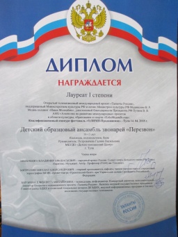 26 апреля образцовый ансамбль «Перезвон» принял участие в международном фестивале-конкурсе «Планета искусств», где получил 2 диплома лауреата 1 степени и Гран-при.