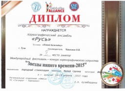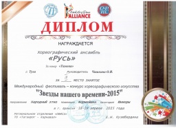 Поздравляем с яркой победой хореографический коллектив «Русь» под руководством Чашкиной Ольги Валериевны в г. Брянск на Международном фестивале-конкурсе хореографического искусства «Звёзды нашего времени-2015»! Четыре 1-х места, два 2-х места и 3-е место! Так держать!