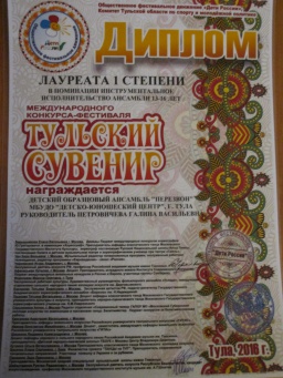 С 3 по 5 декабря в Туле проходил Международный фестиваль-конкурс «Тульский сувенир», участником которого стал детский образцовый ансамбль «Перезвон» в составе Кириловой Виктории, Смирновой Анны, Новиковой Алины и Фетисовой Леры. Коллектив стал лауреатом 1 степени. Поздравляем! Благодарим за помощь в транспортировке передвижной звонницы Кирилову Ю.В., Мартынова С.В. и Карасёва Р.Н.