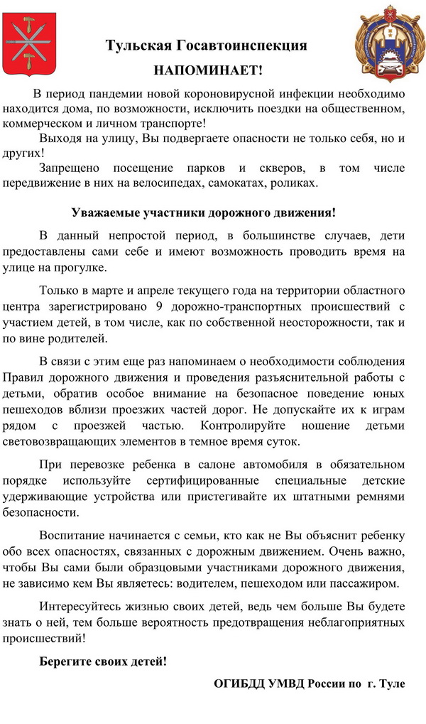 Тульская Госавтоинспекция напоминает!