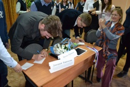 А после пресс-конференции ребята дружно обступили именитых гостей, чтобы сфотографироваться с ними на память и взять автографы.