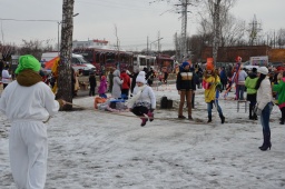 22 февраля коллектив Детско-юношеского центра провел игровую программу «Широкая Масленица». На игровой площадке присутствовали ряженые скоморохи и снеговики. На игровую площадку всех проходящих жителей города зазывали коробейники и панда с бурундуком. Все с радостью принимали приглашение и сразу попадали на веселые игры и состязания: перетягивание каната, плетение косы из веревки, игра «попади мячом в корзину», эстафеты. Так же под аккомпанемент двух баянистов туляки пели частушки. Всем желающим предлагалось порыбачить на «веселой рыбалке», а угощением для всех был горячий чай с блинами собственного производства, которые прибавили отличного настроения и улыбок в это масленичное воскресенье. |