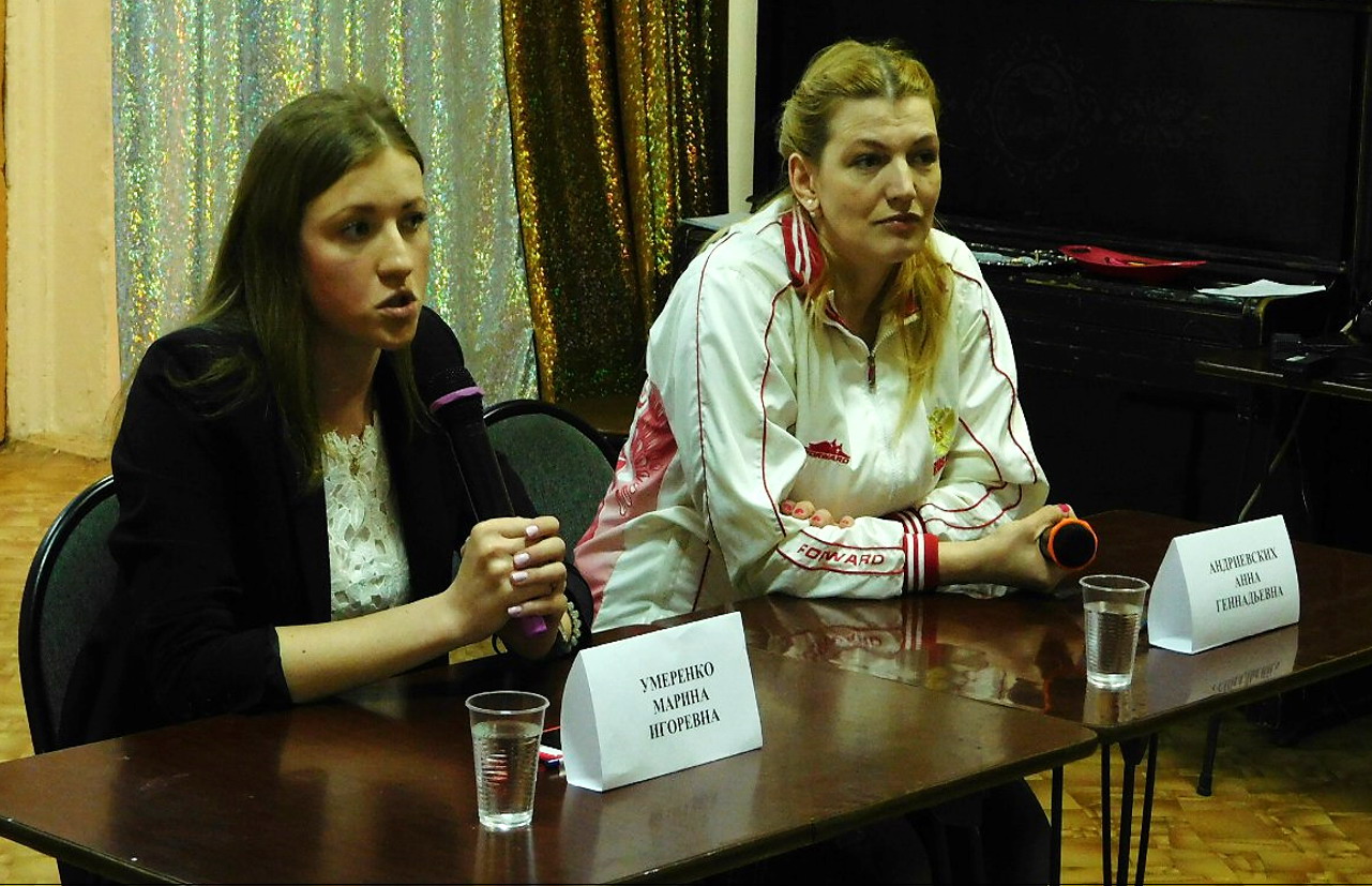Участники встречи – это юные спортсмены города Тулы, а гости - чемпионки мирового уровня! Анна Андриевских и Марина Умеренко. Обе девушки являются заслуженными мастерами спорта России, многократными чемпионками мира, Европы и России. Анна также рекордсменка Книги рекордов Гиннеса, а Марина - действующий член сборной России, начиная с 2007 года.
