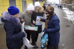 29 октября в рамках Всемирной Зеленой недели активисты волонтерского отряда «Дорогой Добрых Дел» провели социальную акцию «Молодежь за мир и развитие». Подготовив интересные материалы, волонтеры вышли на улицы города, предлагая детям ответить на вопросы викторины, а взрослым поучаствовать в эстафете добрых пожеланий. Каждый случайный прохожий, принявший участие в акции, получил сладкий подарок, раскраску с птицами и памятку: «Чем кормить разные виды зимующих птиц».