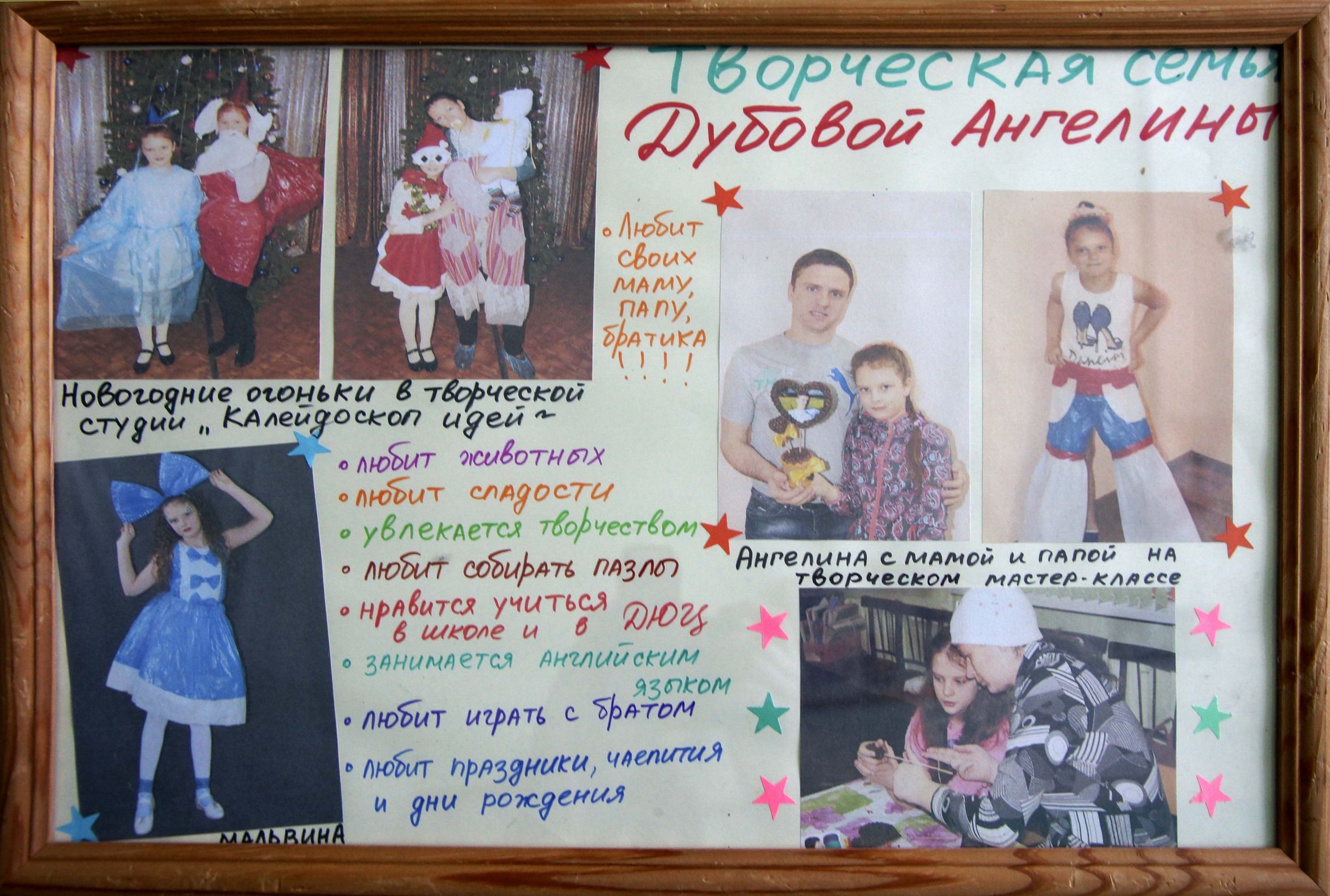 В творческой студии «Калейдоскоп идей» прошла семейная гостиная «Моё счастье - это семья». В теплой и дружной семейной атмосфере за чаепитием каждый воспитанник рассказал о своей семье, подготовив заранее презентацию. Но главным событием стало совместное подготовка детьми и родителями фотовыставки о своих творческих семьях, занимающихся в творческой студии «Калейдоскоп идей», приуроченную к Дню матери.
