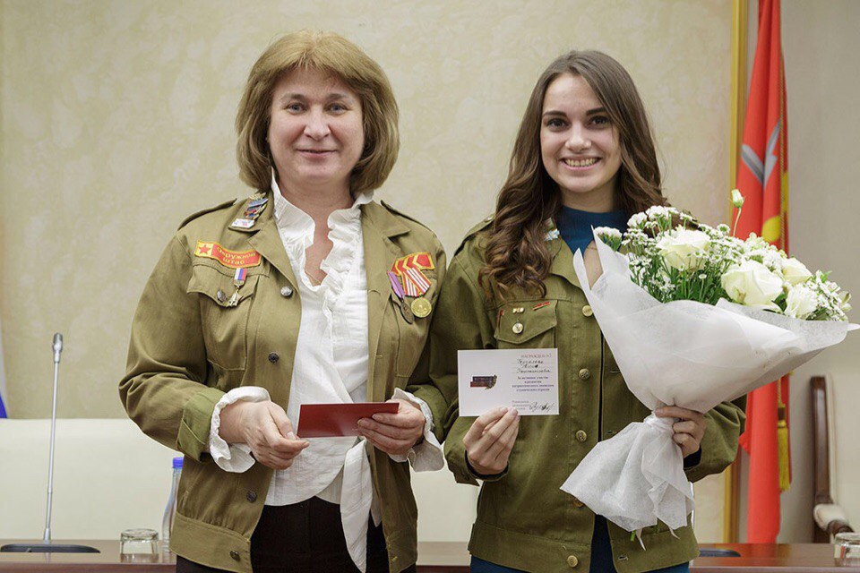 А комиссар студенческих отрядов ТулГУ и наш педагог Букалова Юлия получила знак отличия - ветеран движения студенческих отрядов.