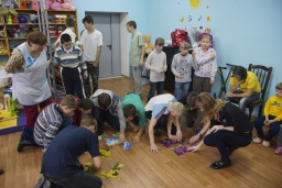 Эти дети - другие, из другого мира, с ними тяжело общаться, но они рады нашему приезду, самые маленькие лезут на руки, хотят обниматься и даже целоваться. Им не хватает внимания и тепла. Им тяжелее давались наши игры: эстафеты, загадки, пазлы, но играли все очень громко, увлеченно, задорно! Все получили огромное удовольствие от встречи!