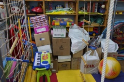 Помимо игровой программы, волонтёры привезли детям канцтовары, развивающие игры, книги, игрушки, раскраски, которые были собраны жителями города в ходе акции «Поможем детям вместе». |