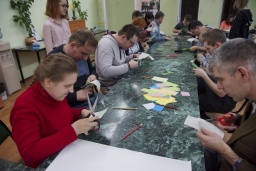 Все участники сделали коллективную открытку со смешным поздравлением для нашего российского Деда Мороза на его день рождения! А в конце все порадовали себя забавными перевоплощениями.