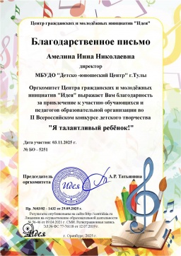 2021 г., ГОУ ДПО ТО «ИПК и ППРО ТО» по программе «Приоритеты развития качества дополнительного образования детей», 144 часа