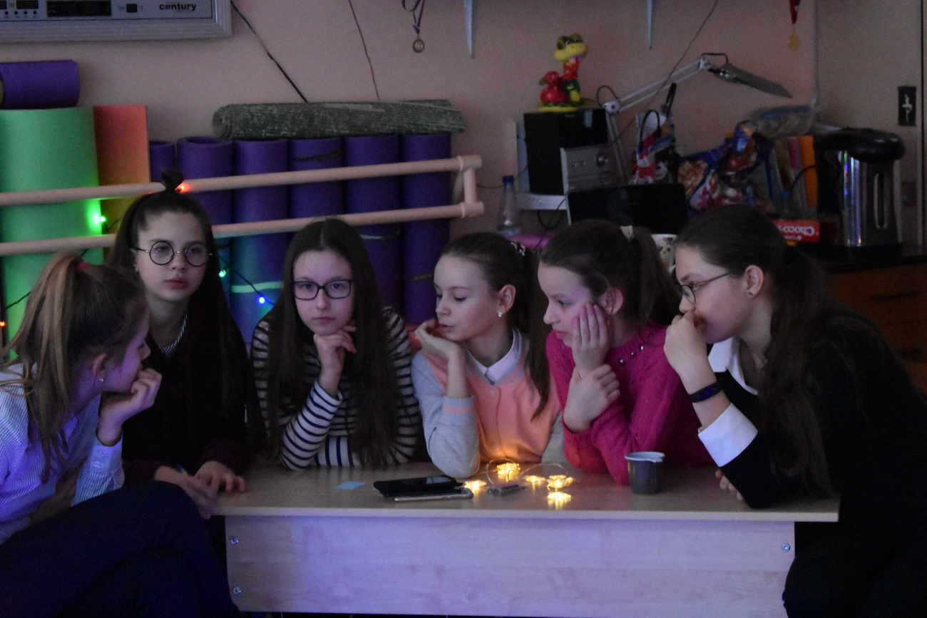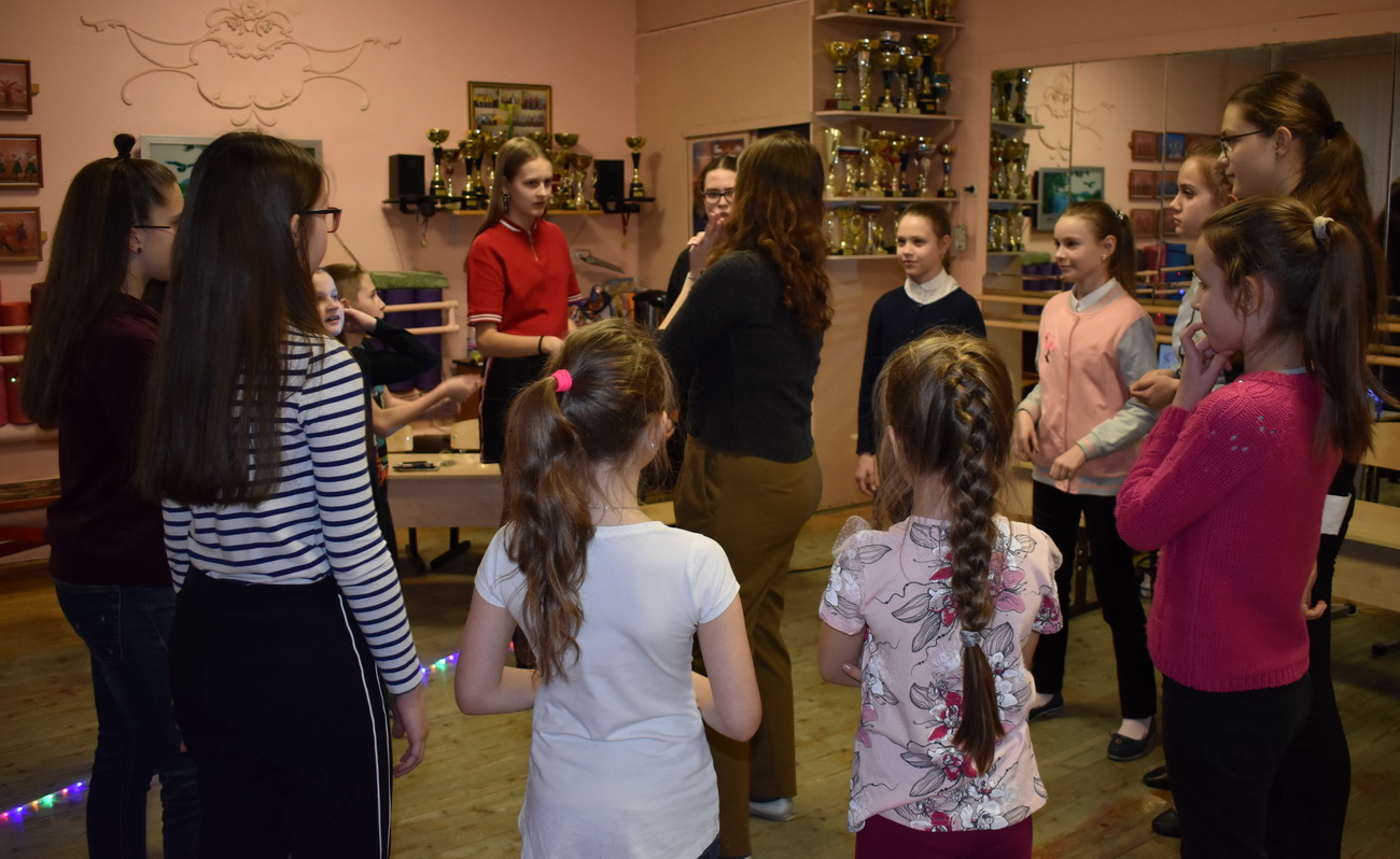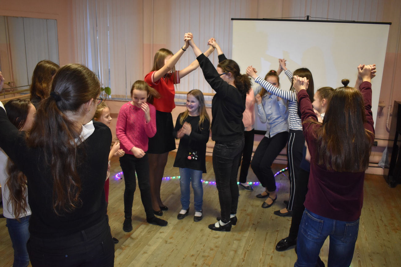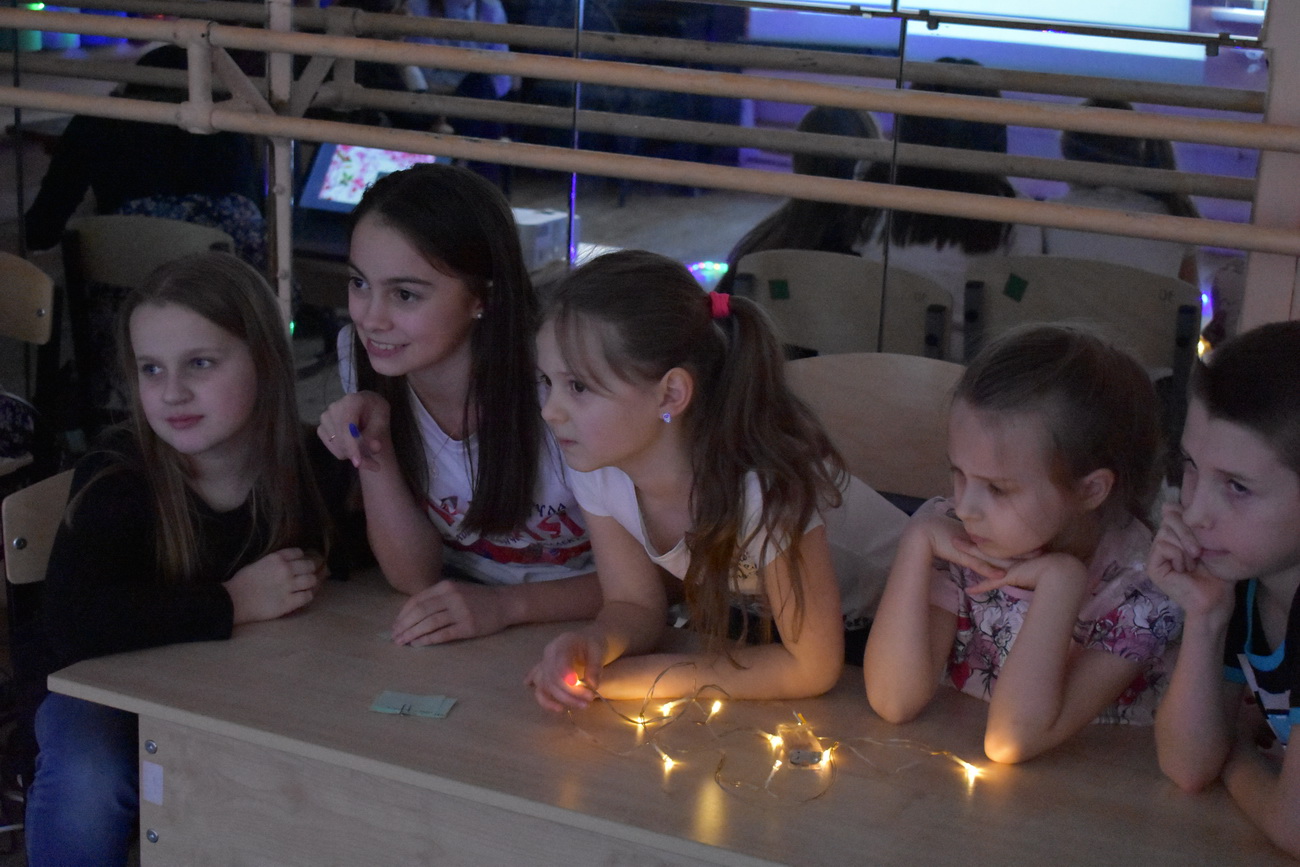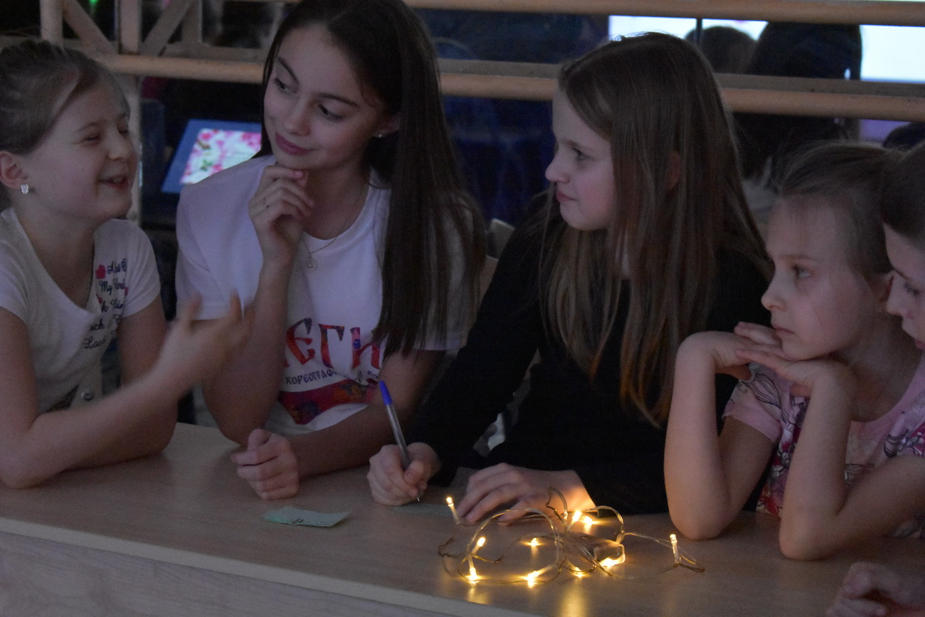 Интерактивная программа состояла из трех частей. В первой все ребята поделились на три команды, чтобы сыграть в интеллектуальную игру «Весенний Квиз». Игра предполагала три раунда: «музыкальный», «устами младенца», «великие женщины». По итогам игры первое место заняла команда розового цвета.